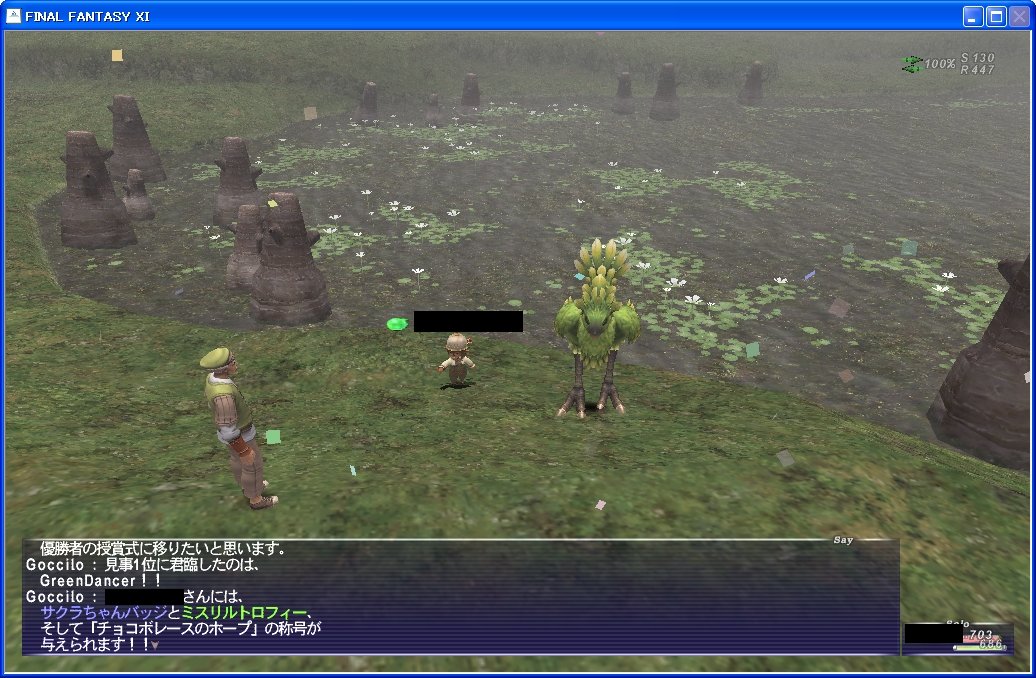 と使用して、順位かわらずで、そのままマイチョコボ1着ゴール